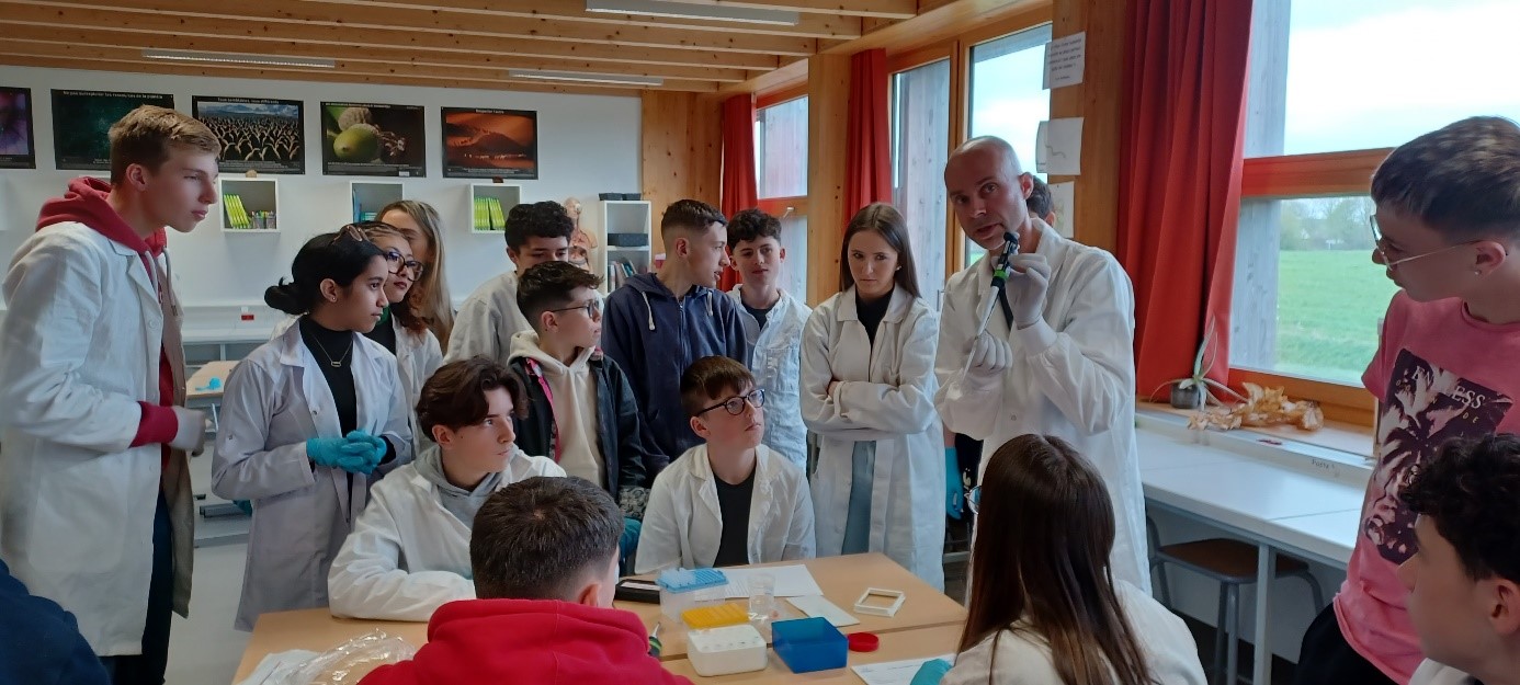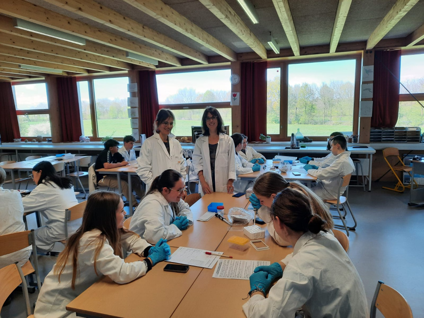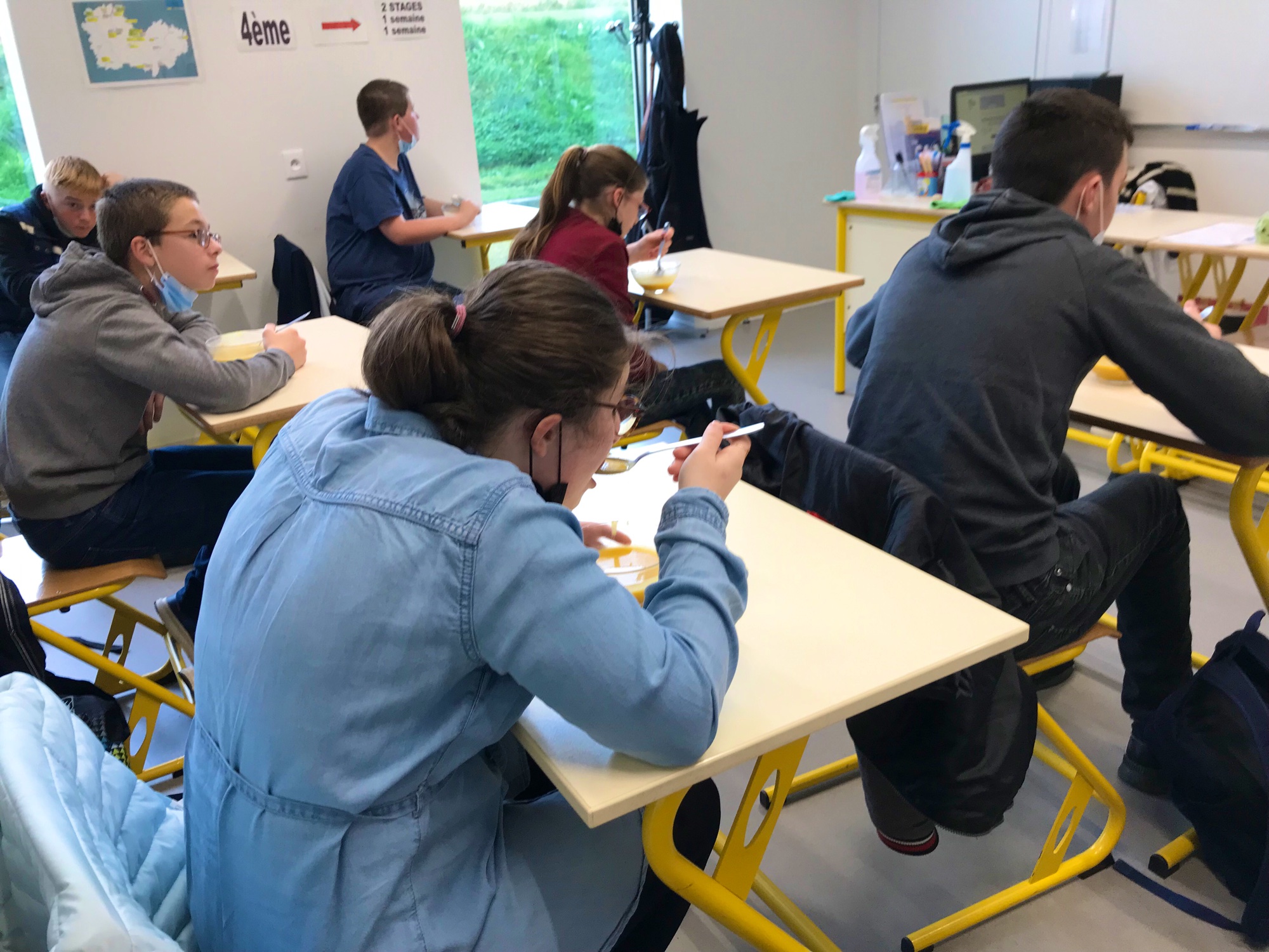 Hier, c’était la reprise. La sonnerie a repris du service pour signaler chaque début de cours. Le « dring » de la cloche fait cesser les cris et les chants des petits élèves pour laisser place au calme scolaire. Les mouches, très présentes par cette chaleur estivale, peuvent faire tout le bruit qu’elles désirent. Les enseignants se mettent en tête de chaque groupe, et les enfants partent, tour à tour, dans leur nouveau quartier. Le temps de prendre une photo de groupe, j’emboîte le pas et suis la 6e G. Tous et toutes entrent religieusement dans une salle de biologie. Chacun s’installe et Monsieur Féron, le professeur de sciences et vie de la terre (SVT) prend la parole pour expliquer ma venue.