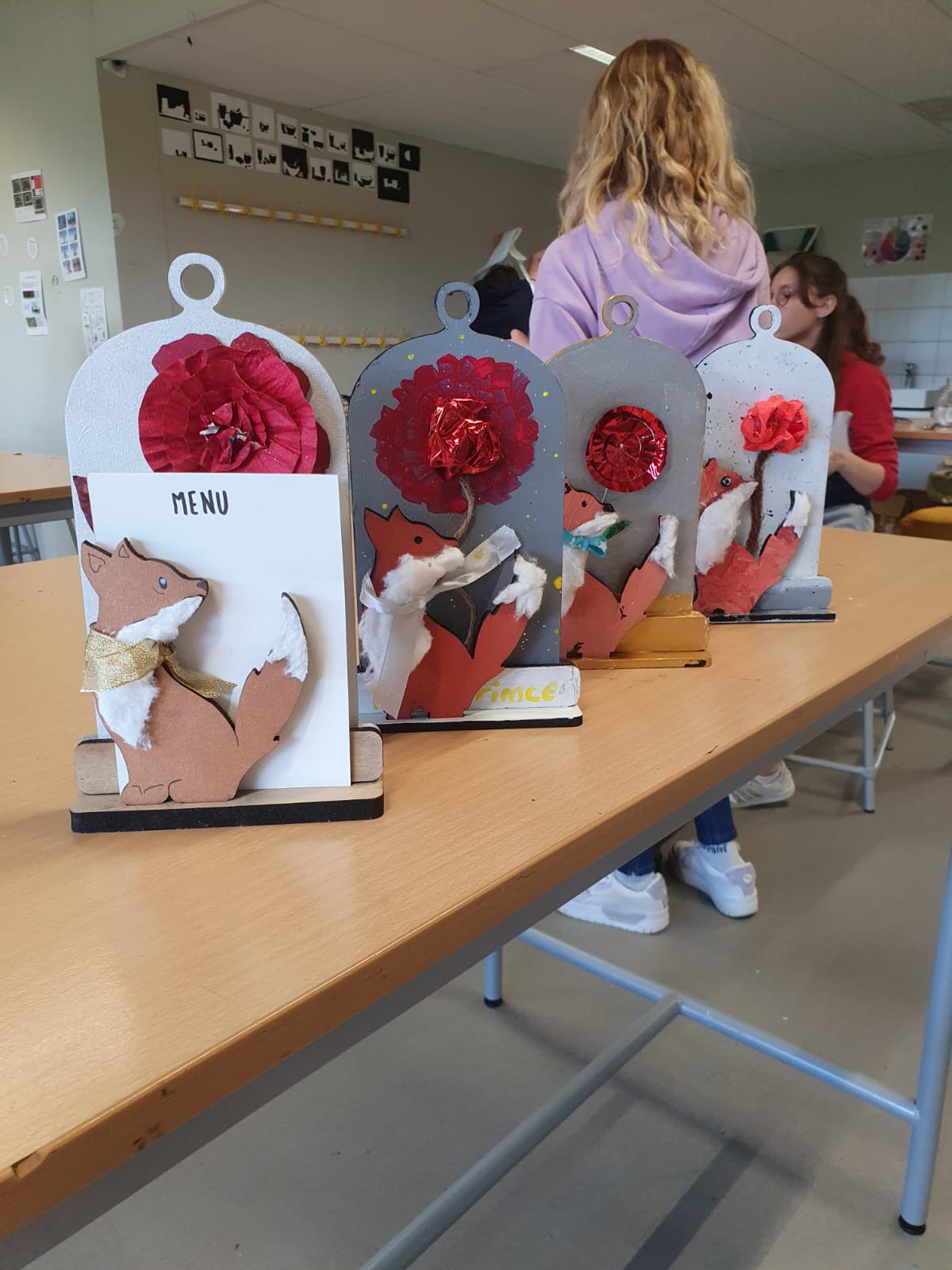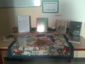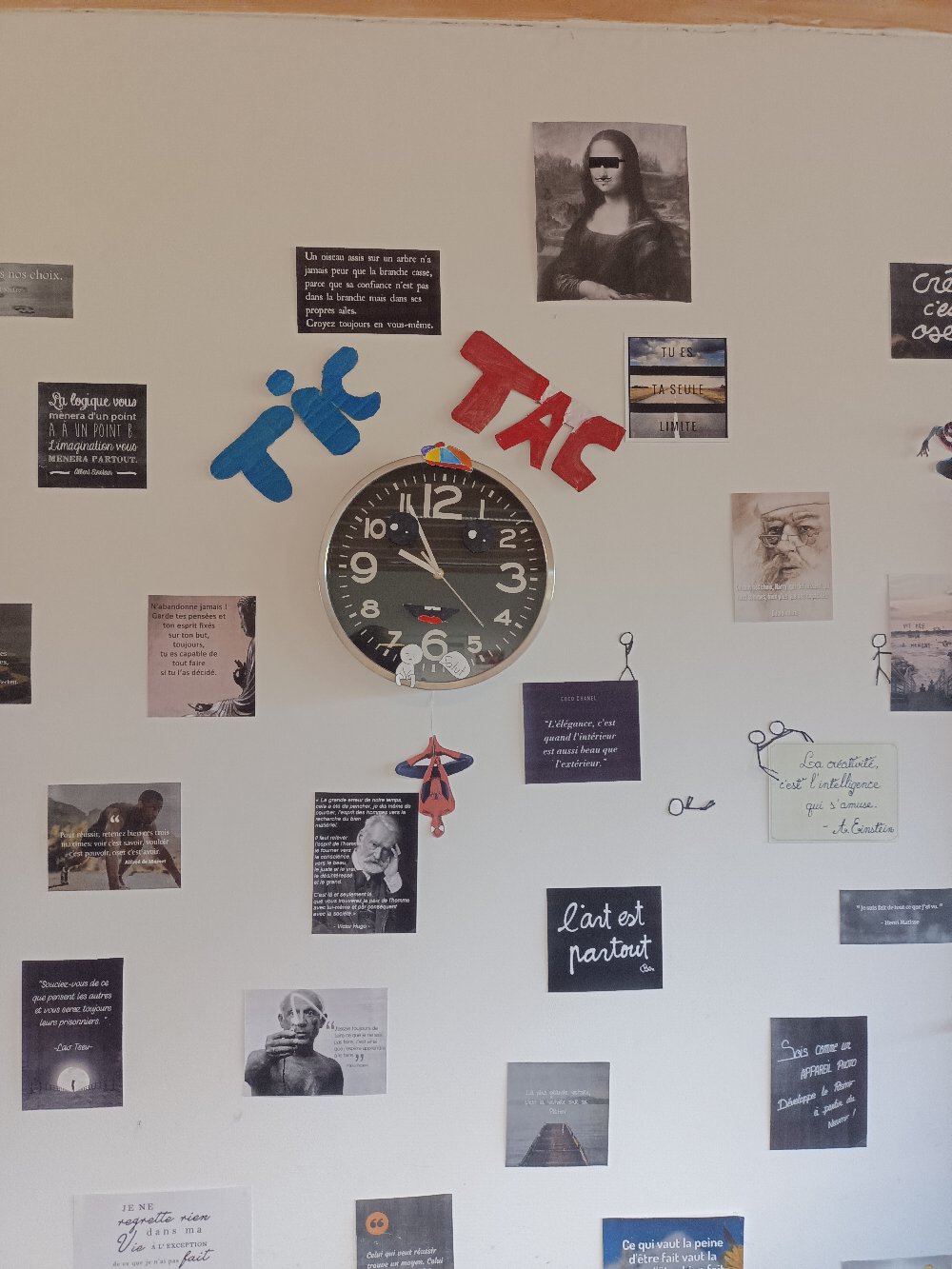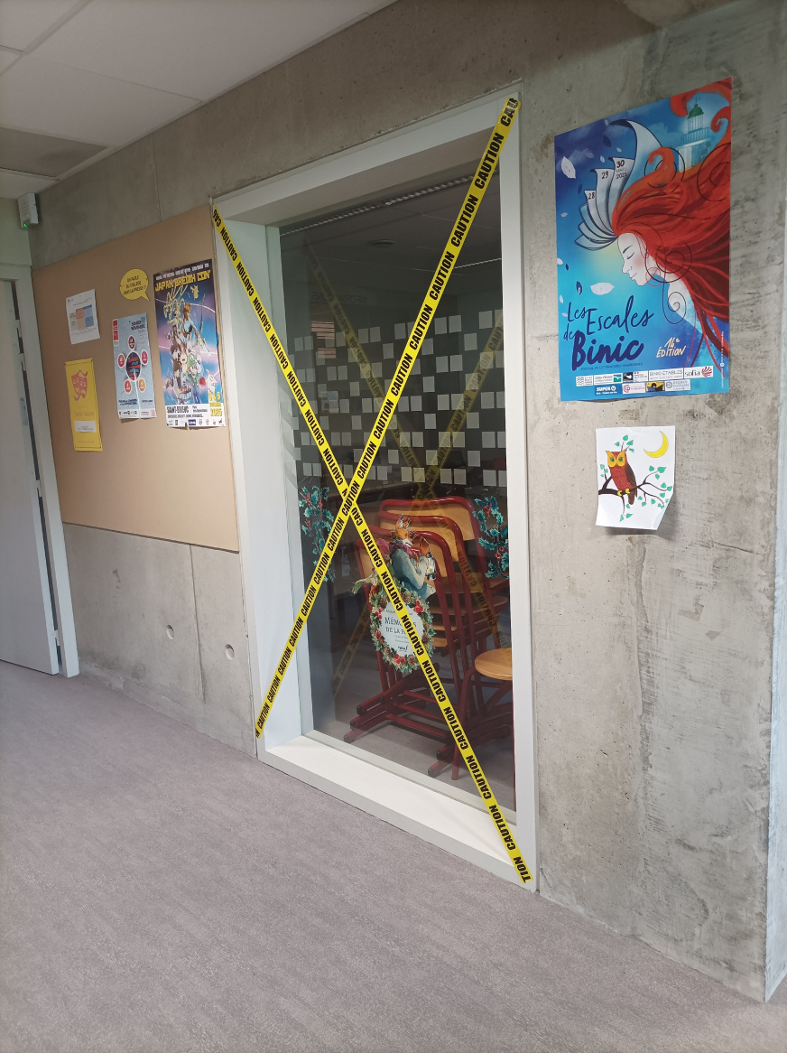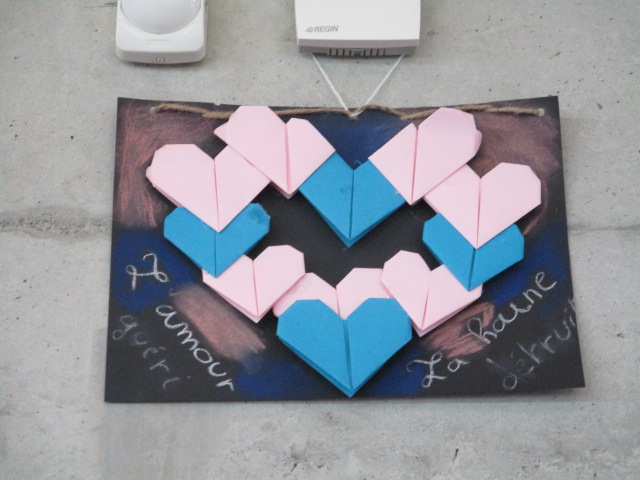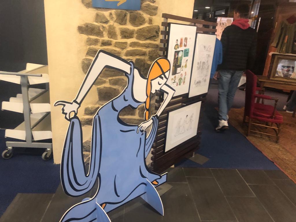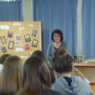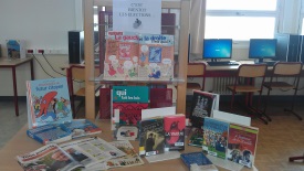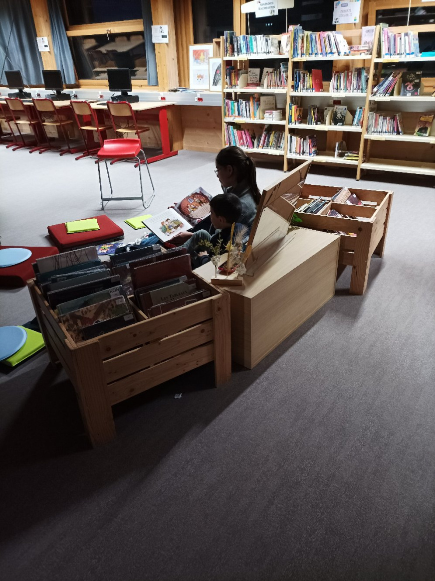 Mme Doux, professeure-documentaliste du CDI du collège, a accueilli une exposition des créations des élèves de 6D en lien avec l’ATE.