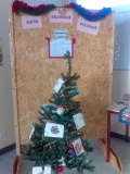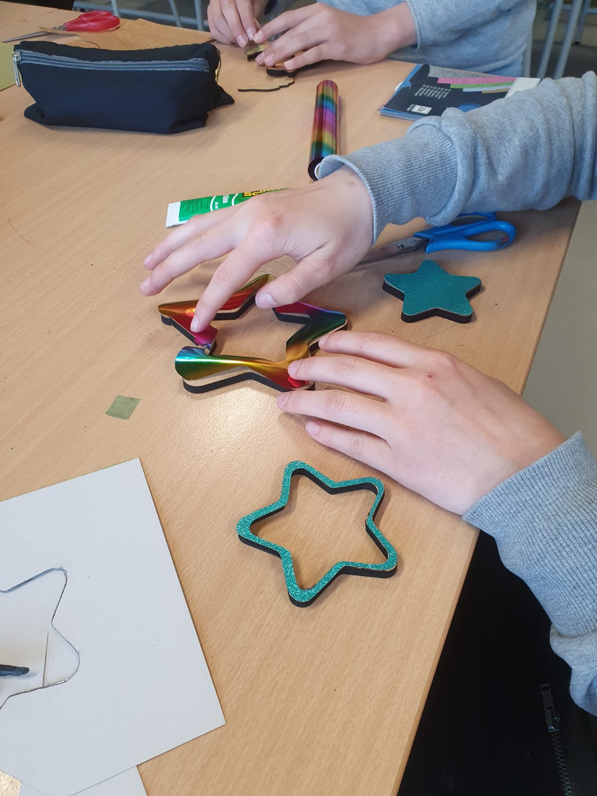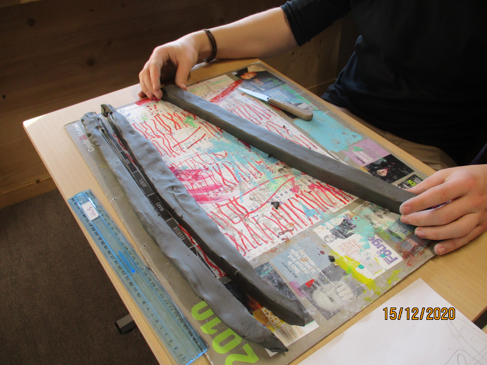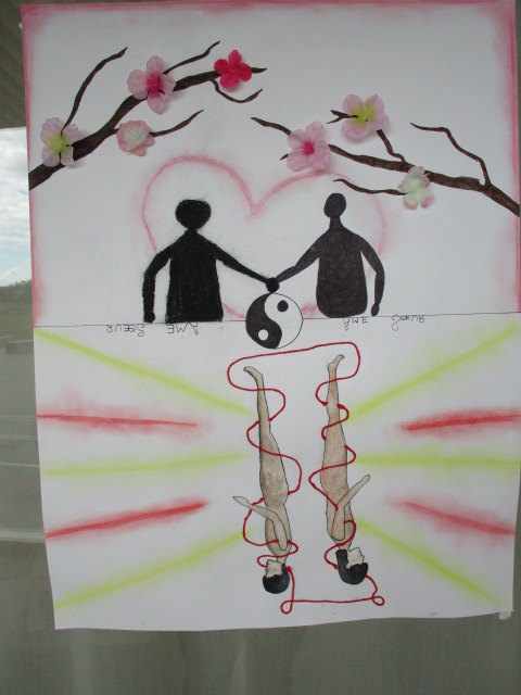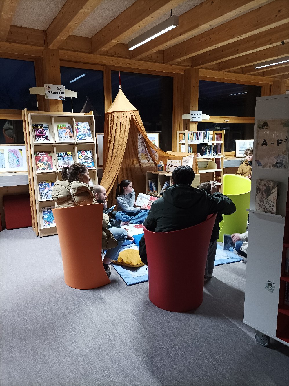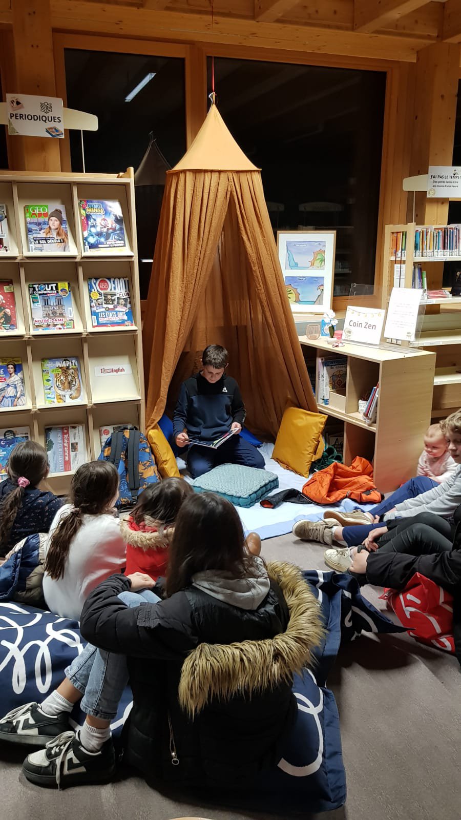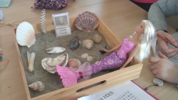 Mme Doux, professeure-documentaliste du CDI du collège, a accueilli une exposition des créations des élèves de 6D en lien avec l’ATE.