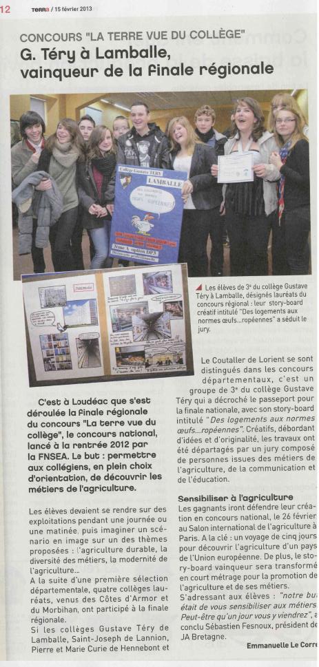 Article de presse du journal Ouest-France du 15/02/2013