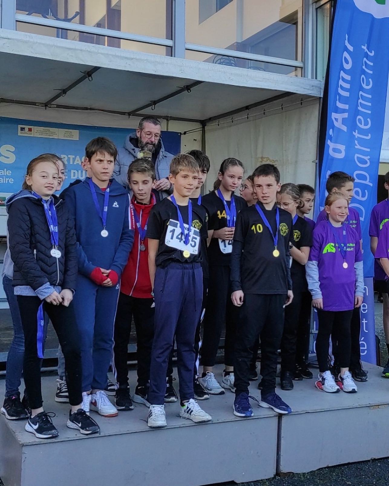 Mercredi après-midi les benjamins de la section football du collège Simone Veil ont terminé premier battant le collège de Ploufragan 1-0 et le collège de Loudéac 4 à 2. Dans le match, comptant pour la demi-finale qui les a opposé au collège de Merdrignac, les benjamins se sont inclinés aux tirs au but malgré une très nette domination dans le jeu. En petite finale, ils se sont imposés devant le collège Chateaubriand de Plancoet et finissent donc à la troisième place de ce championnat départemental. Bravo à eux.