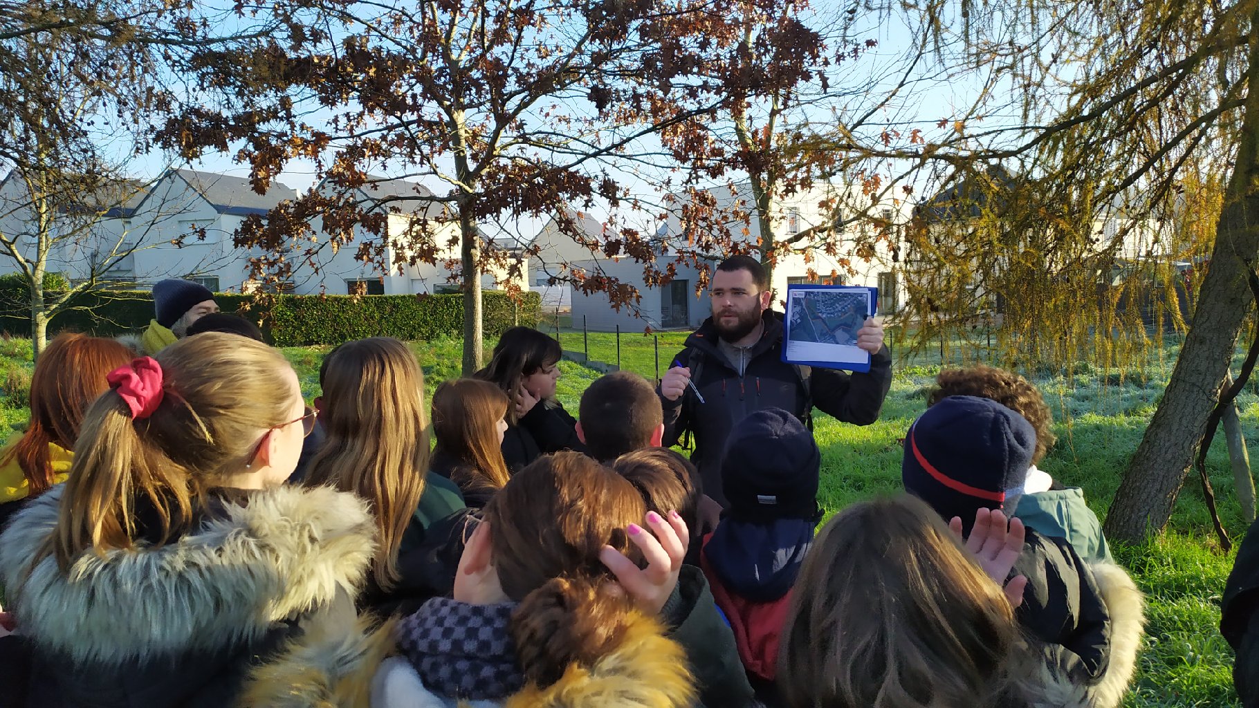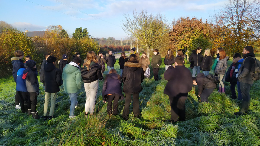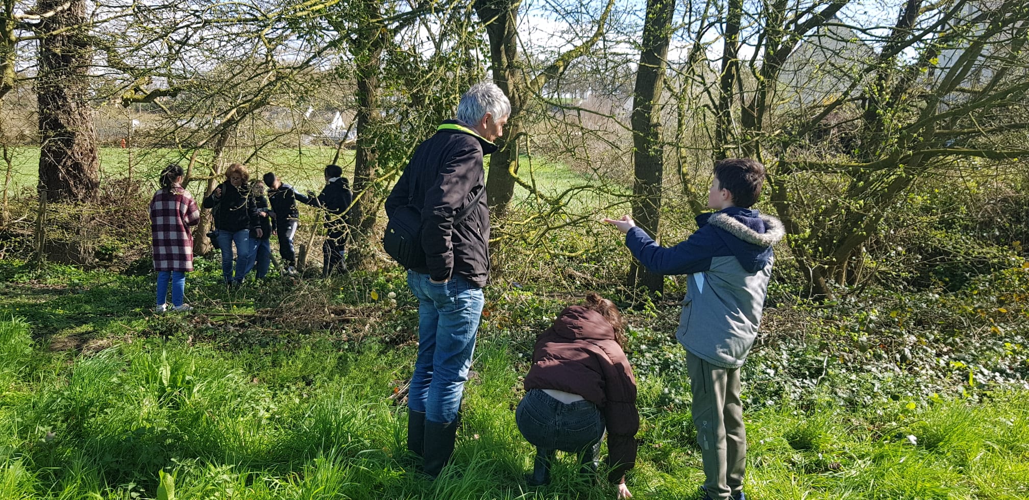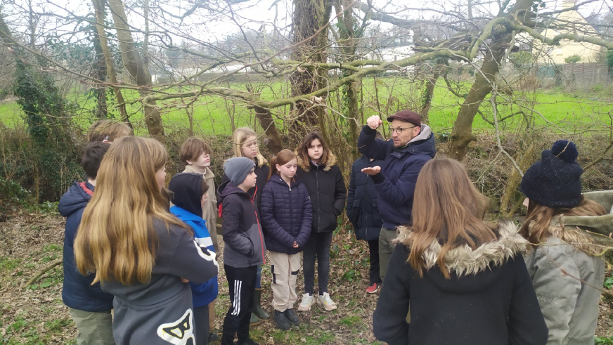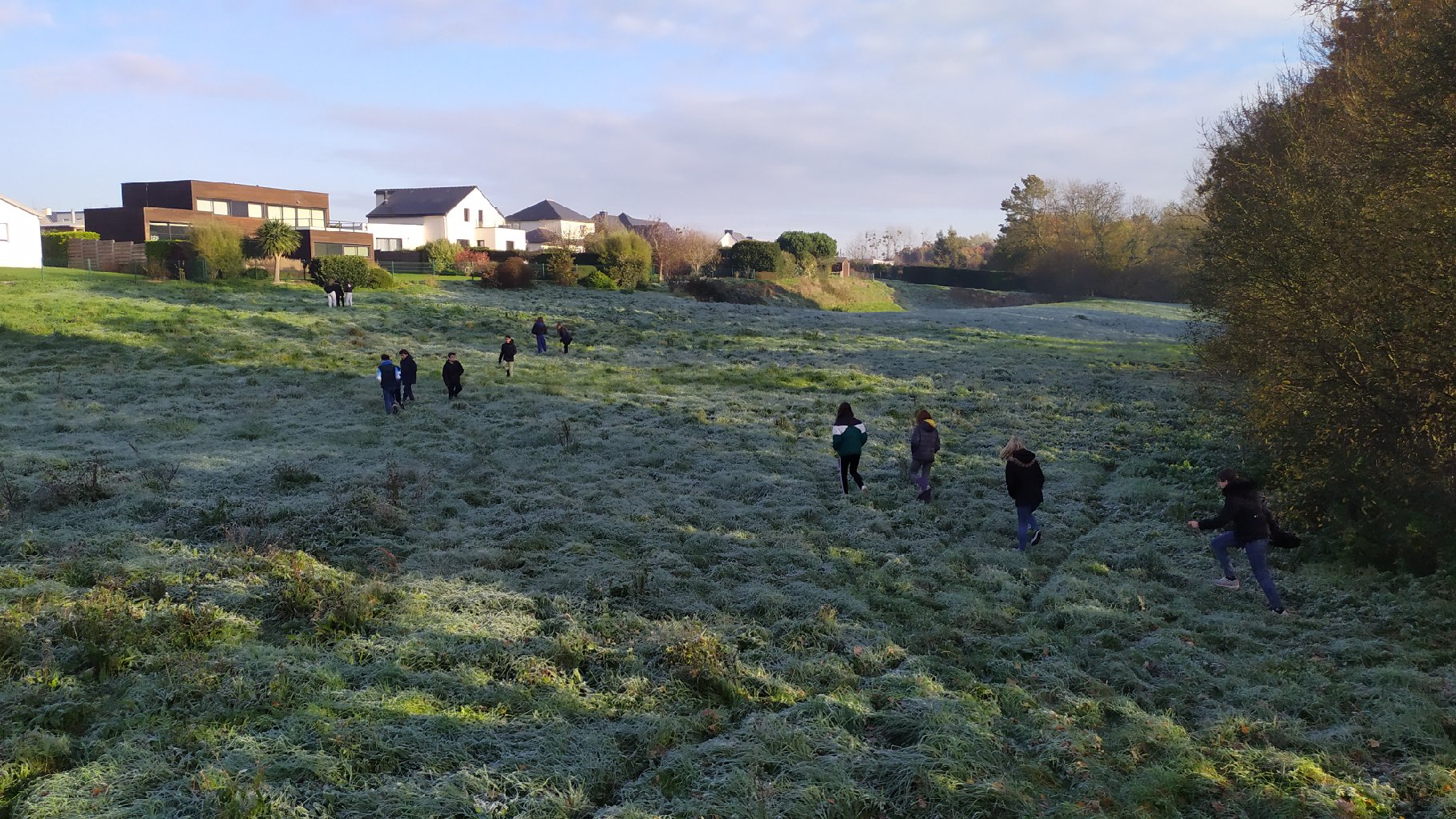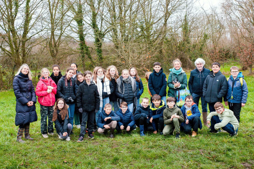 Le jeudi 21 décembre, les élèves de 6e E sont allés sur leur ATE, accompagnés de 3 photographes bénévoles de l’association lamballaise « Comptoir des arts », Serge Andrieux (le président), Mickaël Bailly et Paul Chauvin, pour s’initier à la photographie et se doter d’un fonds de clichés pour réaliser des supports de communication sur leur ATE.Après une explication en classe sur la prise en main de l’appareil photo par les photographes, les élèves ont pu, par groupe, sur le terrain, s’initier à prendre des photos de la biodiversité de la zone et essayer de rendre visible l’invisible.« C’était trop chouette d’utiliser du matériel de pro », s’exclame un élève.Les collégiens ont apprécié manipuler de beaux appareils photos aux potentialités très intéressantes. Equipés de bottes pour certaines, ils ont parcouru la prairie, exploré la haie, balayé le cours d’eau avec leurs objectifs…Les élèves ont ainsi constitué un lot de photos qui serviront par la suite à élaborer un panneau d’information sur l’ATE, qui sera placé sur site, à destination du grand public pour inciter à la contemplation de la nature.Mme GUINOT, leur professeure de français, projette déjà un atelier d’écriture où les collégiens pourront s’exprimer à partir de leurs prises de vues et faire du lien entre la méthodologie de projet de l’aire éducative et les apprentissages fondamentaux dispensés par l’éducation nationale.