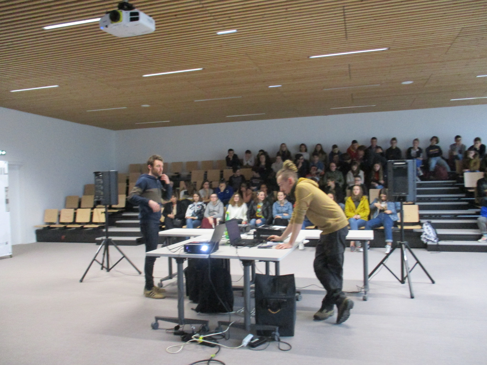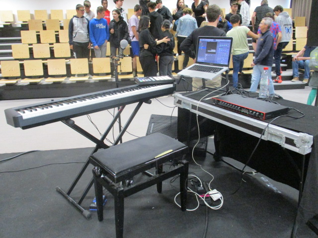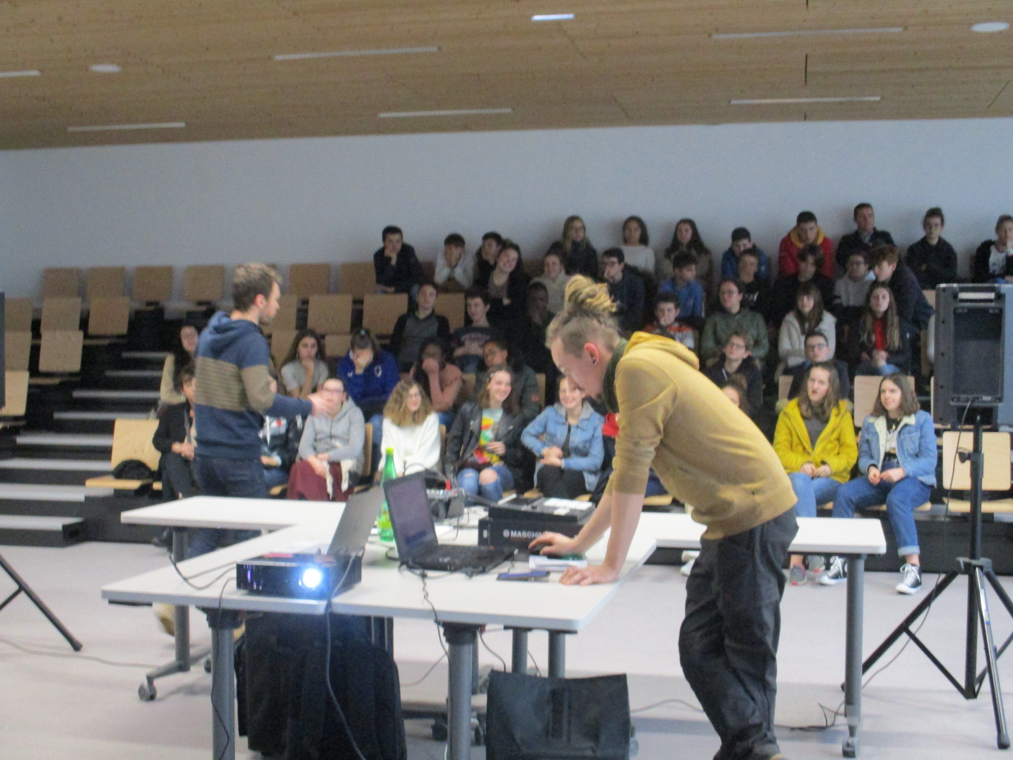 Une soixantaine d’élèves du collège ont assisté à une conférence sur l’électronique dans la musique. Elle était animée par Yann Tronet (Bonjour Minuit à Saint-Brieuc) et Victor Bracco (agent du collège, musicien et compositeur). Les élèves ont apprécié des créations sonores de Victor et différents types de musique. Un atelier musical suivra prochainement cette démonstration.