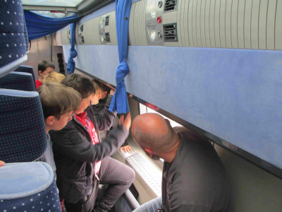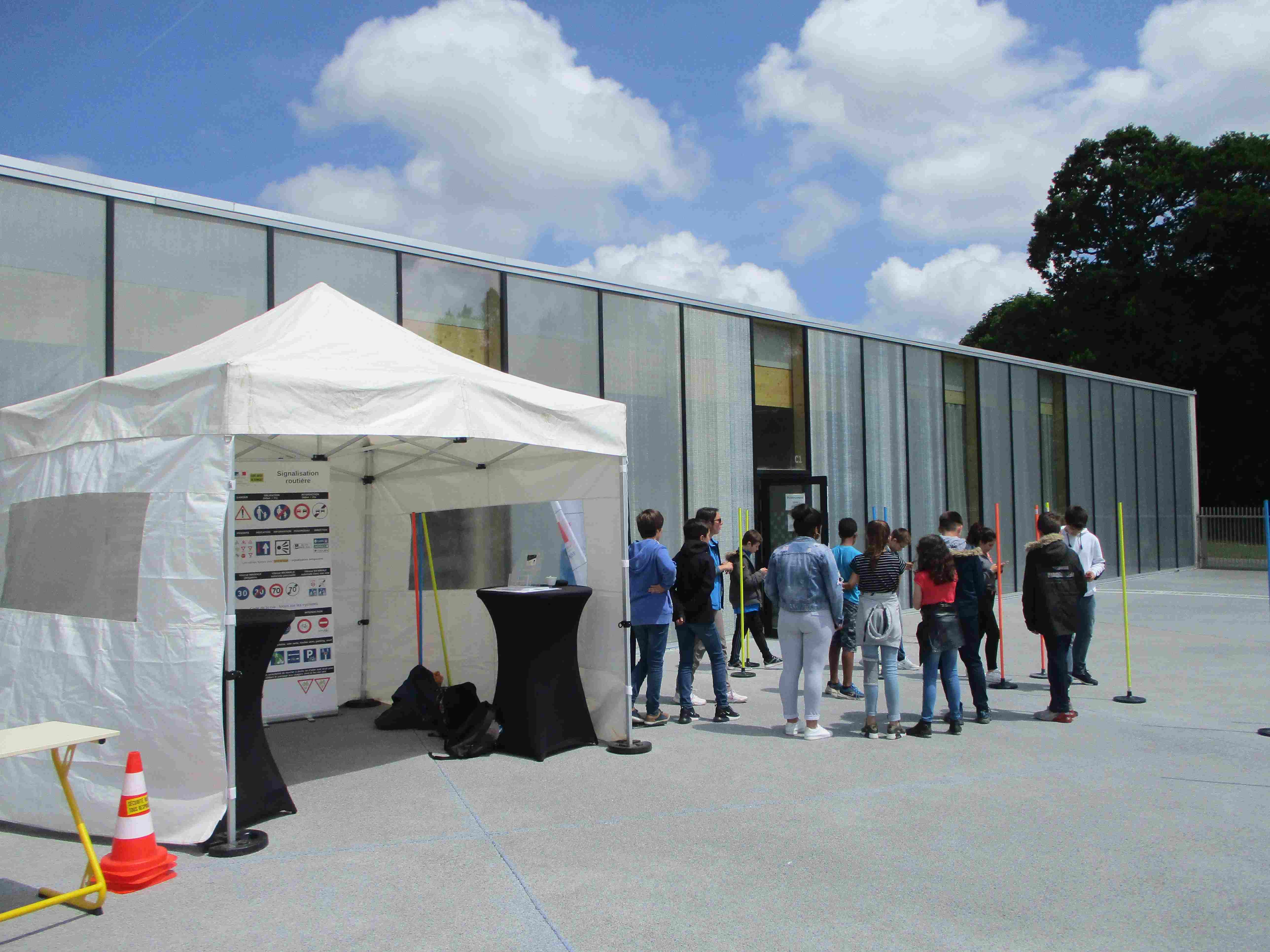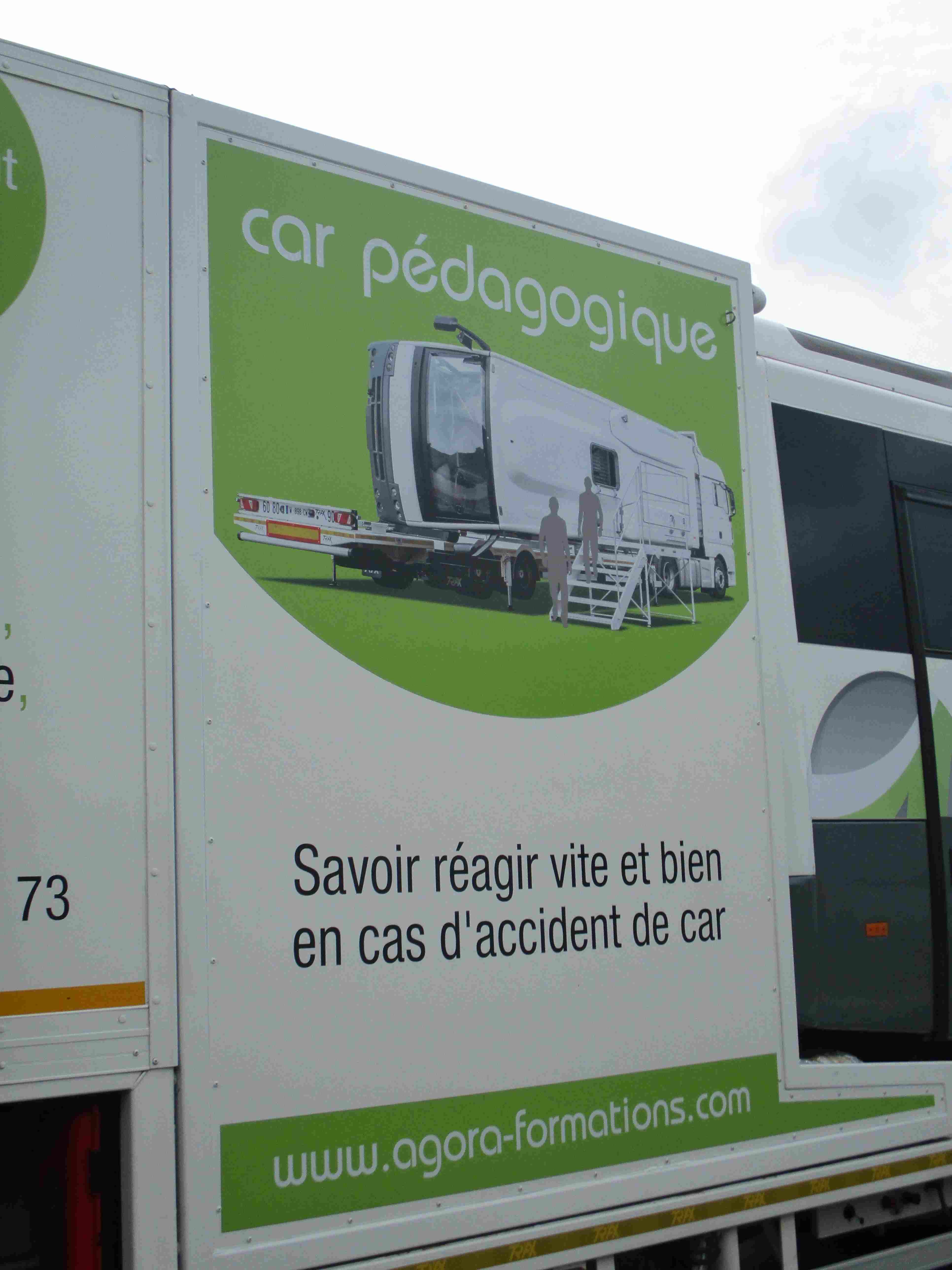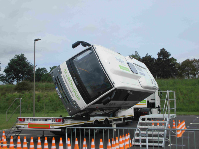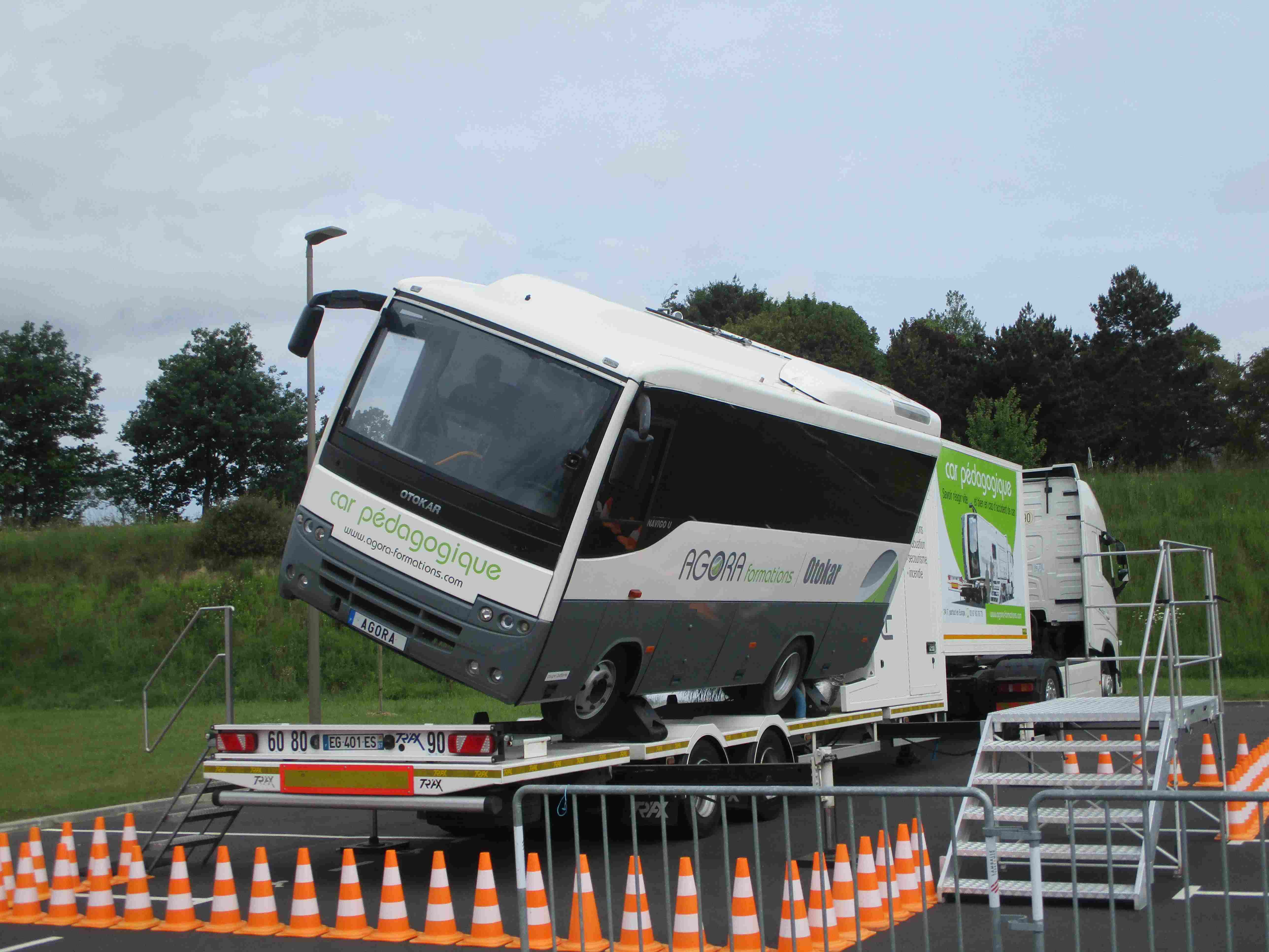 - Un « bus-Tonneau » (pour la première fois dans un collège en Bretagne) est également présent sur le site pour une simulation de retournement et d’évacuation d’un car accidenté.
