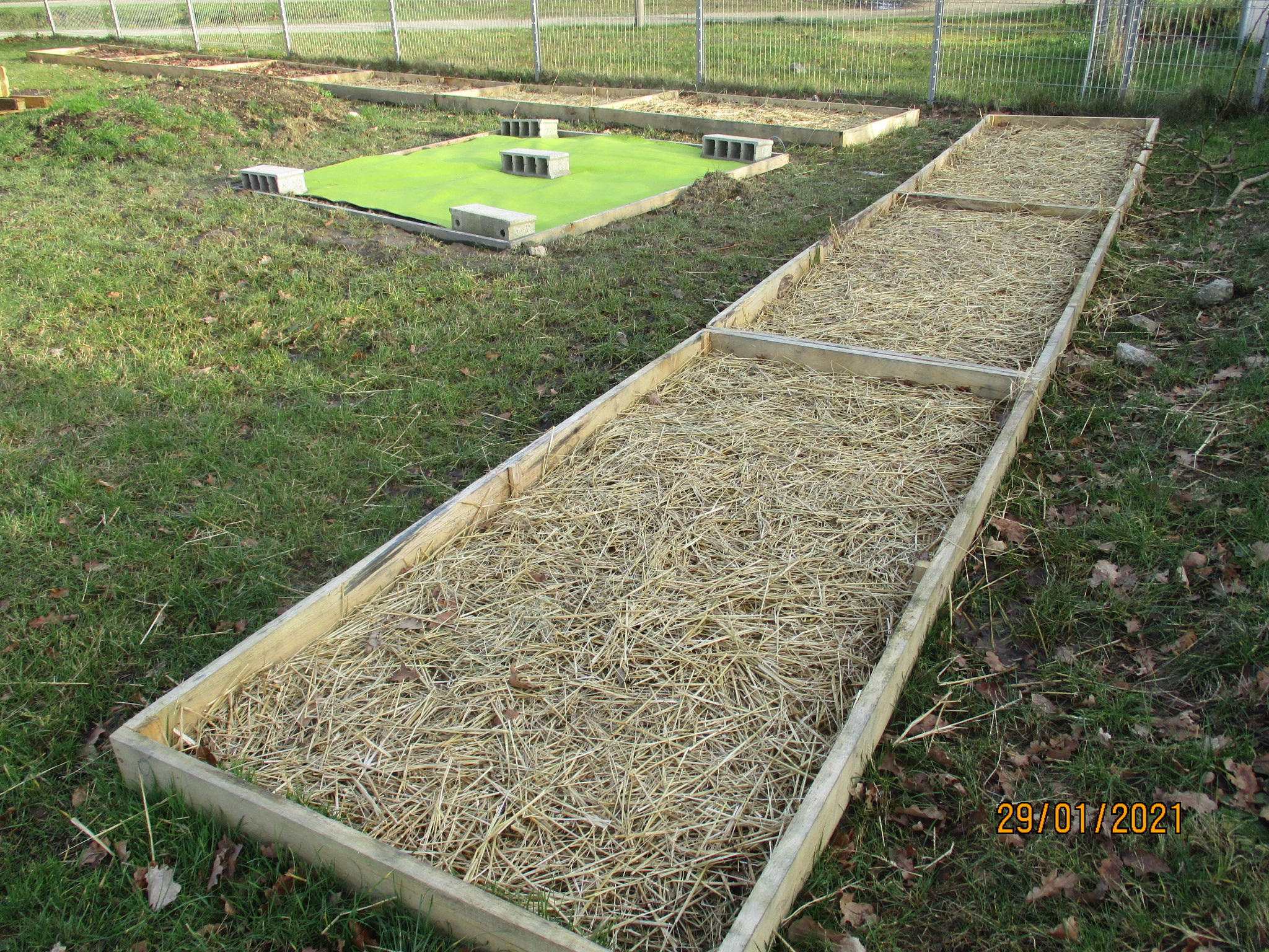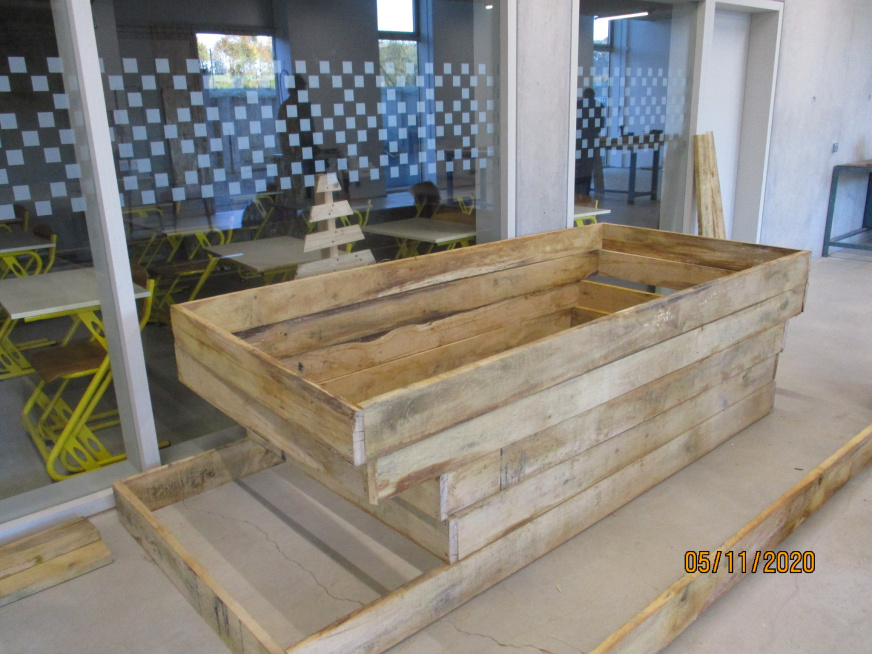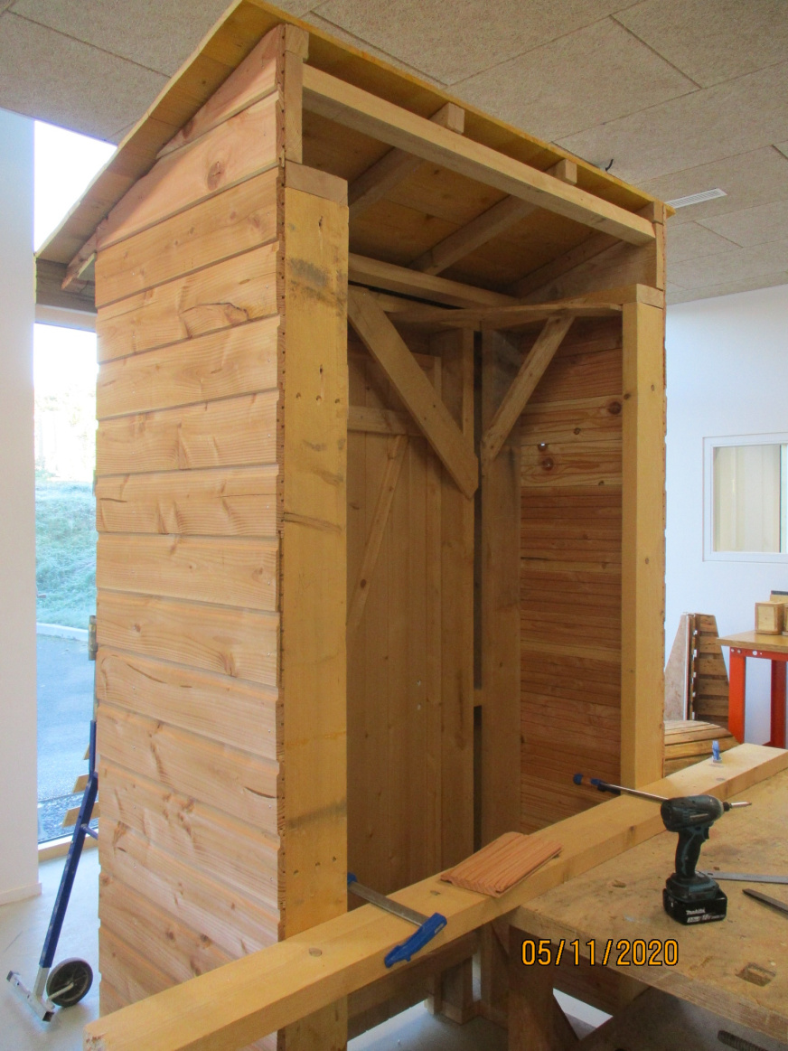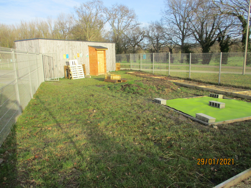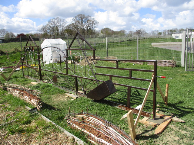 Installation des bancs sur l’aire : Les bancs confectionnés par les ateliers Segpa du collège avec le soutien des services techniques de Lamballe ont été installés sur la zone de l’aire.