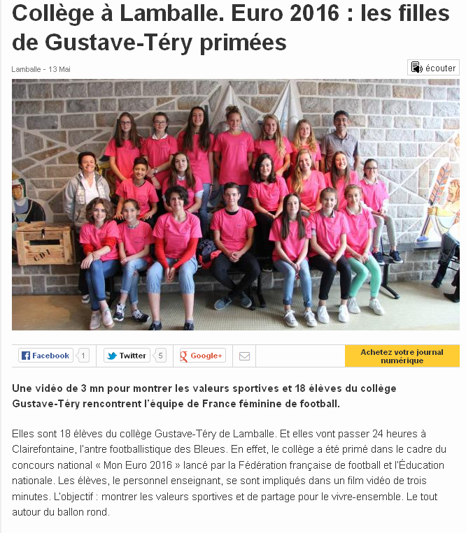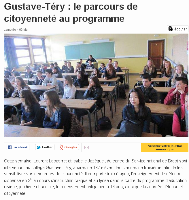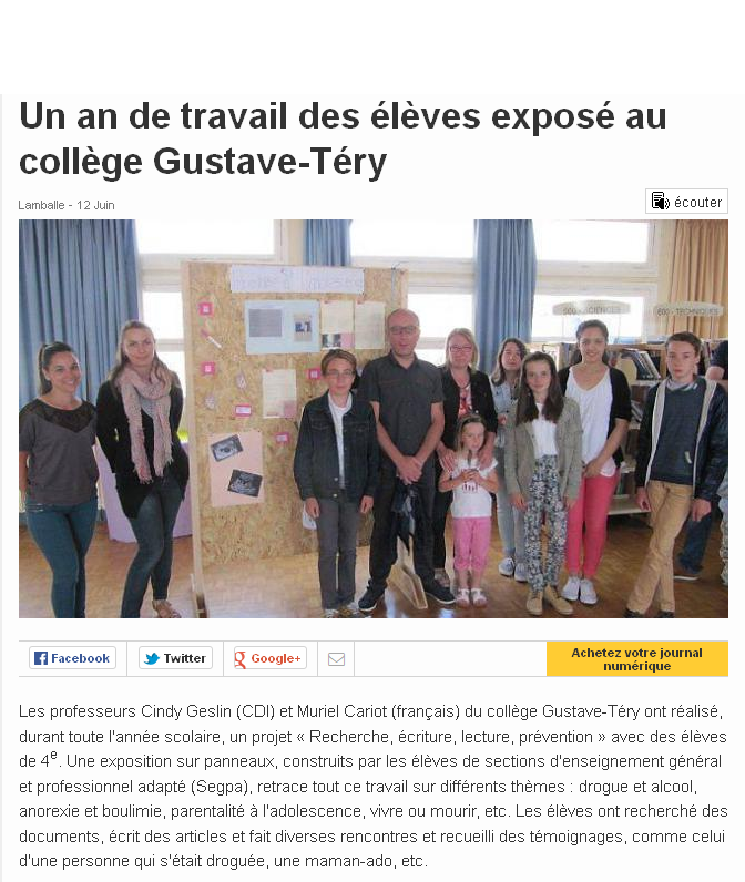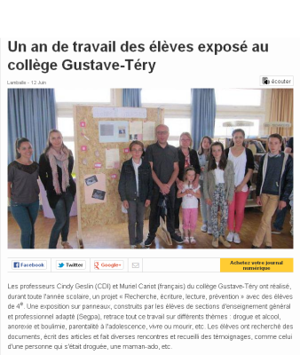 Les élèves étaient accompagnés par Mme Andesha (principale du collège), Mme Cadieu, Mme Guinot et M. Guyot (enseignants), Judith Houdmon (de la Ligue de l’enseignement 22).