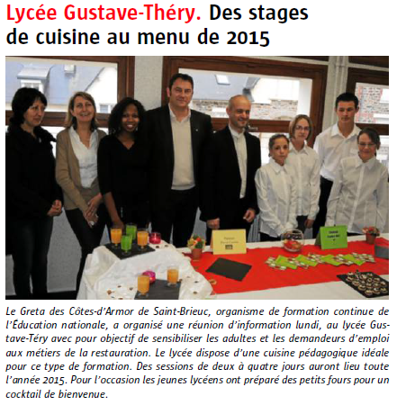 Le Télégramme : Stages de Cuisine 2015