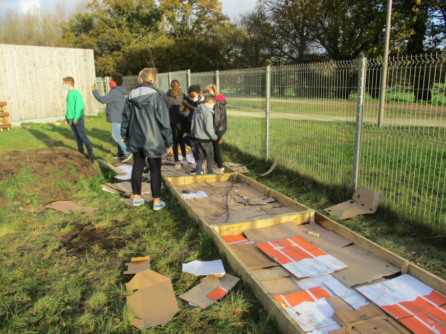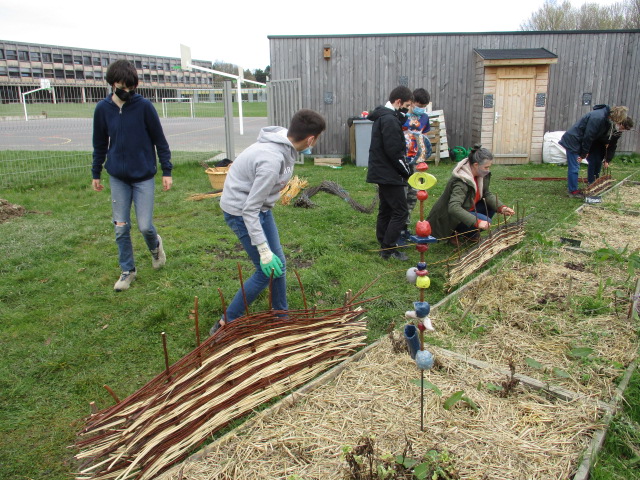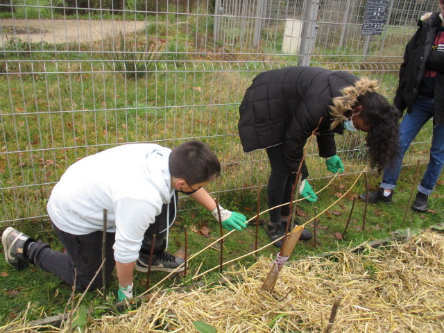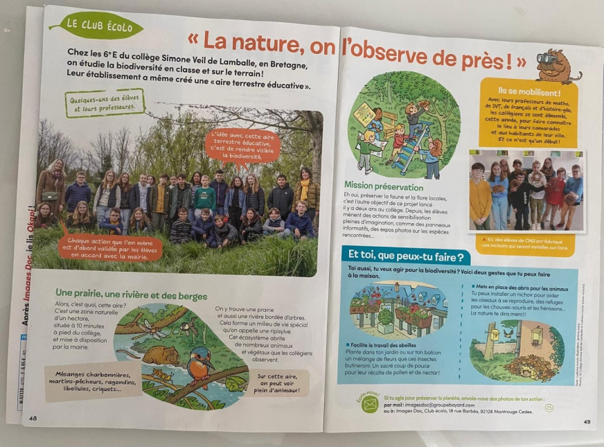 Suite à la découverte de la zone, les élèves de 6e E ont pu réfléchir, au sein des "conseils de la Terre", aux actions à mener sur leur Aire Terrestre Educative (ATE). Au Printemps 2023, ils y ont réalisé un ramassage de déchets, ainsi qu’un pique nique « zéro déchets » avec les élèves de CM2 de l’école Beaulieu. Les futurs 6es leur ont offert des mangeoires à oiseaux, qui seront installées en 2024 sur la zone".