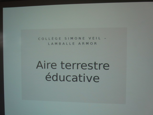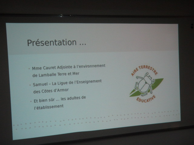 Aujourd’hui avait lieu la présentation aux élèves de la classe de 6e E du projet « Aire terrestre éducative » en présence des partenaires de Lamballe-Armor (Mme Camille Cauret, adjointe au développement durable et au cadre de vie), de la Ligue de l’enseignement (M Samuel Dufresne, notre référent de territoire pour ce projet).