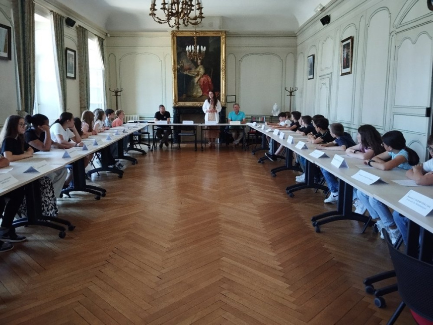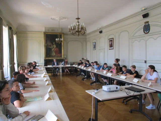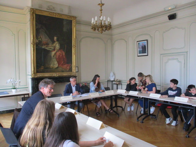 2e Rencontre et conseil de la terre à la mairie de Lamballe-Armor. Les élèves ont rencontré, dans les locaux de la mairie, l’adjointe en charge du cadre de vie et à l’environnement. Ils ont ainsi présenté les diverses actions réalisées dans l’année sous forme de lecture en cascade par groupes et thèmes.