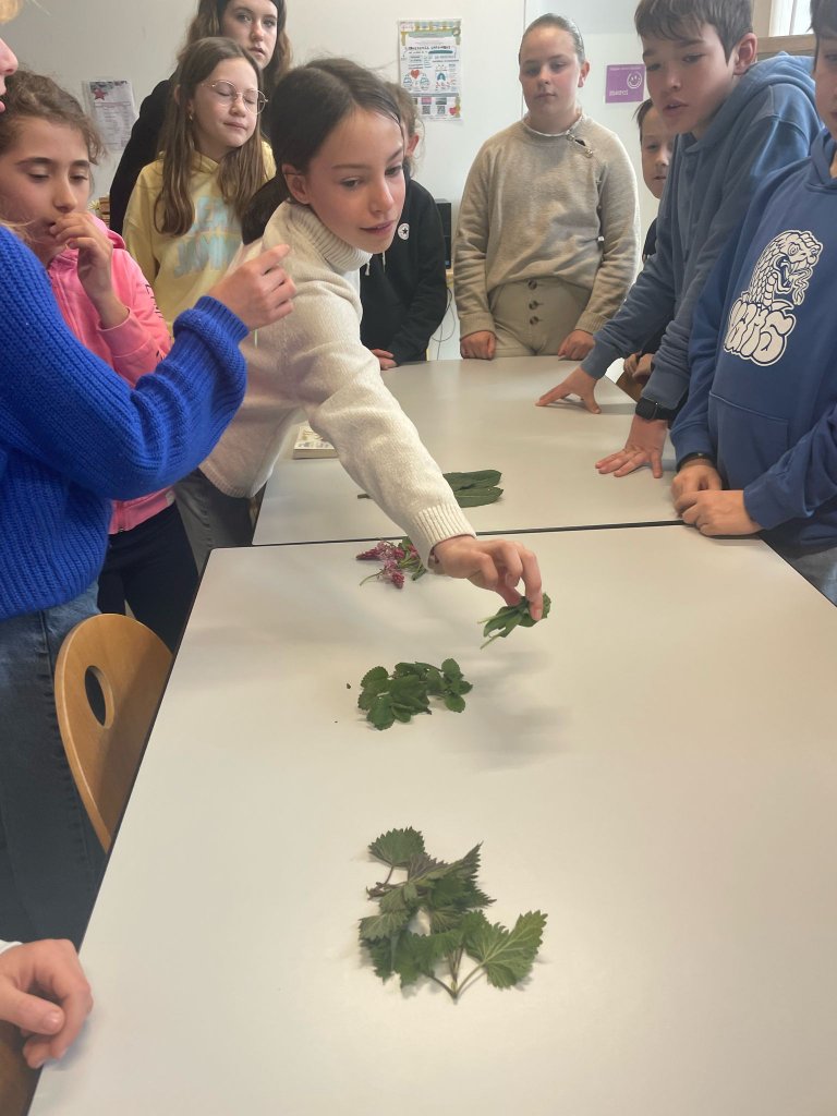 Nous avons réalisé deux recettes, en utilisant les végétaux de l’ATE : soupe d’orties et gressins/crème d’ail des ours. Délicieux ! La reconnaissance des végétaux est utile pour se régaler… ☺️🌿 Nous travaillerons prochainement sur le rôle des levures, micro-organismes utilisés dans la pâte à pain 🍞