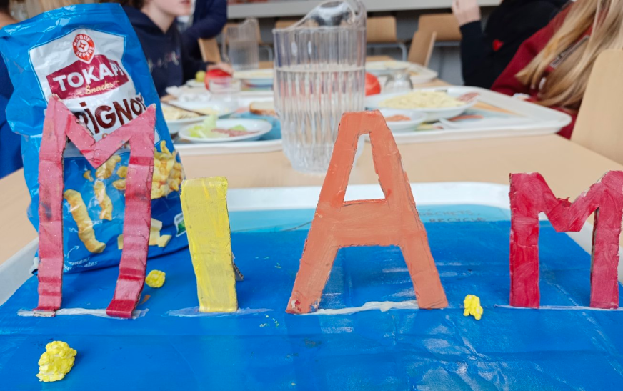 "Au self du collège, nous, les élèves, apprenons à trier nos déchets grâce aux panneaux. Il y a deux poubelles jaunes pour les déchets recyclables : une pour les serviettes en papier et l’autre pour les emballages en plastique. Et il y a la poubelle noire où on met les restes de nourriture qui ensuite sont données à des chiens pour éviter le gaspillage. Nous pensons que ce serait bien de mettre une autre poubelle, comme un composteur par exemple. Au final, plus nous trions, plus la Terre ira bien car il y aura moins de pollution ! Le recyclage est donc aussi important"