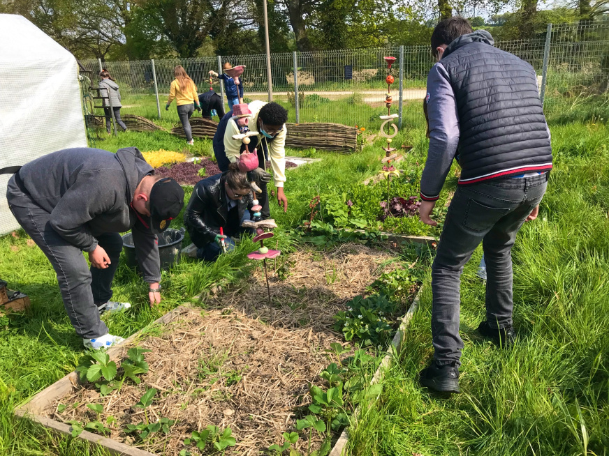 Nous avons choisi d’engager un projet de valorisation de la biodiversité : un travail photographique, pour faire connaître la biodiversité de notre ATE, ainsi que la fabrication de bancs, pour rendre possible le fait de « prendre une pause » et de contempler la nature.Nous allons collaborer pour cela avec une association lamballaise (« Comptoir des Arts »), ainsi qu’avec les ateliers du collège…