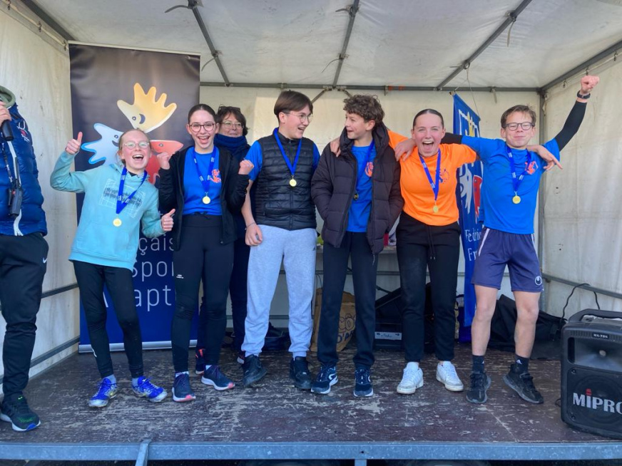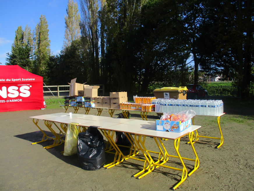 Aujourd’hui, par une météo clémente au regard de celle de la semaine, le collège a organisé son challenge des classes en partenariat avec les écoles primaires du secteur. Ainsi, entre ce matin et cet après-midi, ce sont plus de 1 200 élèves qui ont foulé les pistes « Lamballaise ». En plus de l’équipe EPS du collège, l’organisation de cette épreuve nécessite un travail de coordination de tous les adultes de l’établissement. Le « Team EPS » pour la préparation des circuits et l’organisation des postes, la cuisine pour les commandes (1200 pommes, 150 litres de jus d’orange, 200 litres d’eau, 75 barres de quatre-quarts, 30 tables….), l’infirmerie, les enseignants pour l’accompagnement et les jalonneurs. Sans oublier le personnel pour le pointage, la distribution , le contrôle et les supporters ! Bref un beau travail d’équipe pour une belle journée sportive. RDV l’année prochaine !
